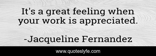 This page presents the quote "It's a great feeling when your work is appreciated.". Author of this quote is Jacqueline Fernandez. This quote is about great, feeling, appreciated,.