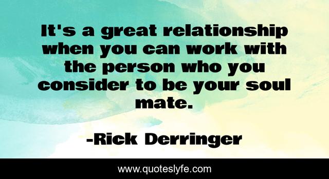 This page presents the quote "It's a great relationship when you can work with the person who you consider to be your soul mate.". Author of this quote is Rick Derringer. This quote is about great, work, soul,.