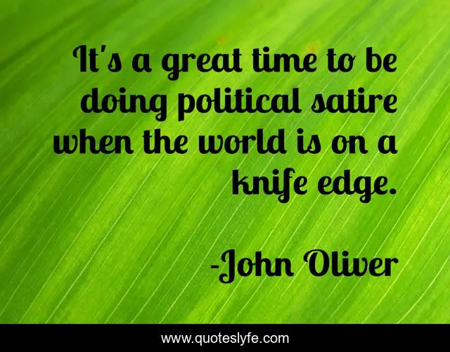 This page presents the quote "It's a great time to be doing political satire when the world is on a knife edge.". Author of this quote is John Oliver. This quote is about world, great, political,.