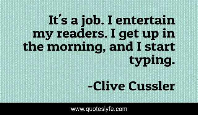 This page presents the quote "It's a job. I entertain my readers. I get up in the morning, and I start typing.". Author of this quote is Clive Cussler. This quote is about start, job, up,.