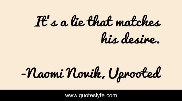 This page presents the quote "It's a lie that matches his desire.". Author of this quote is Naomi Novik, Uprooted. .