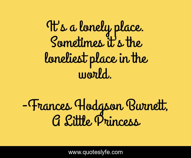 This page presents the quote "It's a lonely place. Sometimes it's the loneliest place in the world.". Author of this quote is Frances Hodgson Burnett, A Little Princess. .