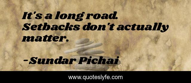 This page presents the quote "It's a long road. Setbacks don't actually matter.". Author of this quote is Sundar Pichai. .