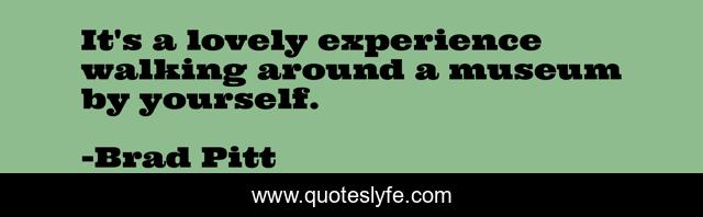 This page presents the quote "It's a lovely experience walking around a museum by yourself.". Author of this quote is Brad Pitt. This quote is about walking, museum, yourself,.