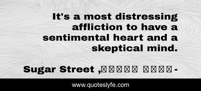 This page presents the quote "It's a most distressing affliction to have a sentimental heart and a skeptical mind.". Author of this quote is نجيب محفوظ, Sugar Street. This quote is about heart, sentimentality, skepticism, contradiction,.