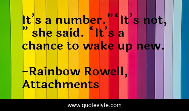This page presents the quote "It’s a number.”“It’s not, ” she said. “It’s a chance to wake up new.". Author of this quote is Rainbow Rowell, Attachments. This quote is about wake-up, chance, number,.