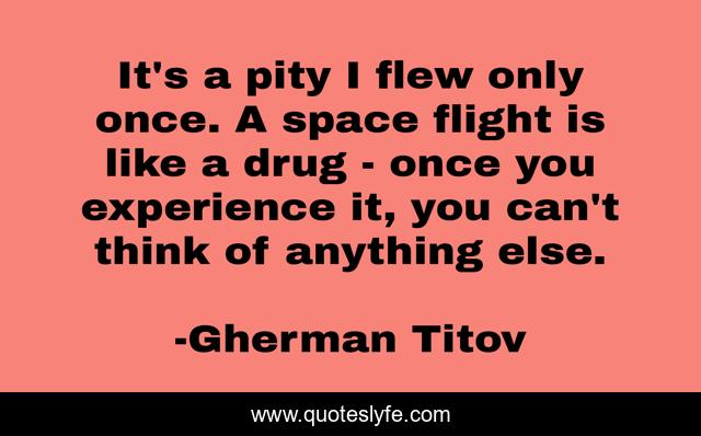 This page presents the quote "It's a pity I flew only once. A space flight is like a drug - once you experience it, you can't think of anything else.". Author of this quote is Gherman Titov. This quote is about think, experience,.