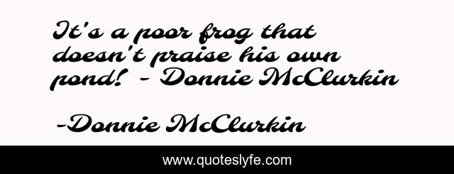 This page presents the quote "It's a poor frog that doesn't praise his own pond! - Donnie McClurkin". Author of this quote is Donnie McClurkin. This quote is about inspirational-attitude, enthusiasm, inspirational,.