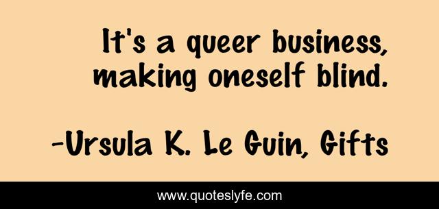 This page presents the quote "It's a queer business, making oneself blind.". Author of this quote is Ursula K. Le Guin, Gifts. This quote is about blindness, choice,.