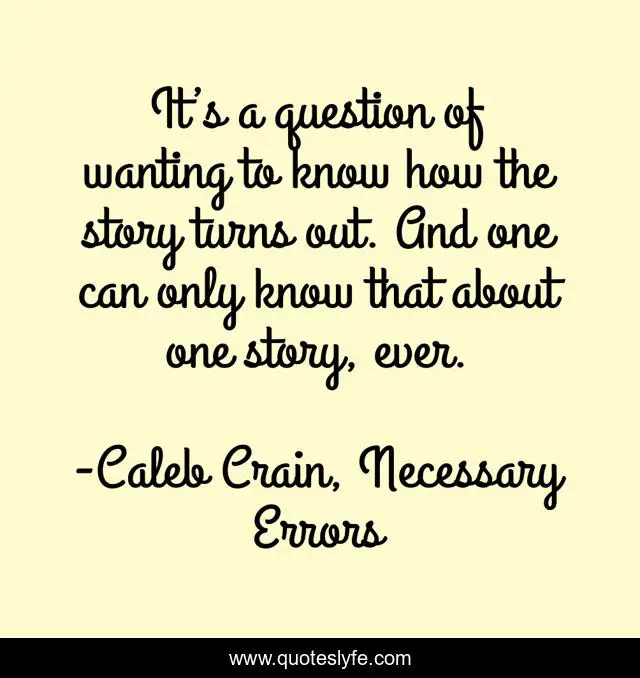 This page presents the quote "It’s a question of wanting to know how the story turns out. And one can only know that about one story, ever.". Author of this quote is Caleb Crain, Necessary Errors. .