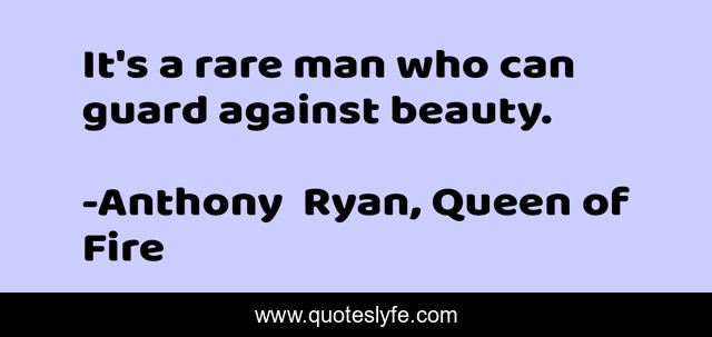 This page presents the quote "It's a rare man who can guard against beauty.". Author of this quote is Anthony Ryan, Queen of Fire. This quote is about unusual, rare, beauty, defend, guard, unique, man,.