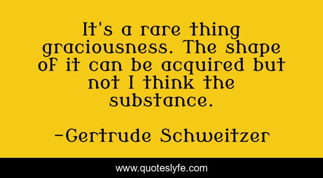This page presents the quote "It's a rare thing graciousness. The shape of it can be acquired but not I think the substance.". Author of this quote is Gertrude Schweitzer. This quote is about helping, people,.