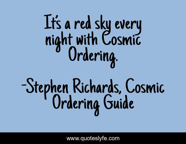 "Stephen Richards, Cosmic Ordering Guide Quotes." Quoteslyfe.com, 2025. Tue. 09 Dec. 2025. <https://www.quoteslyfe.com/quote/It-s-a-red-sky-every-night-17009>.
