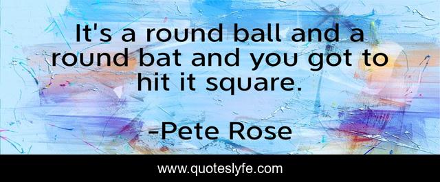 This page presents the quote "It's a round ball and a round bat and you got to hit it square.". Author of this quote is Pete Rose. .