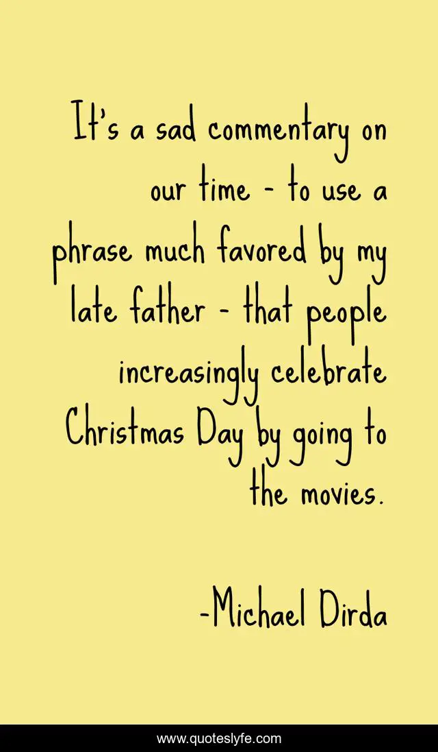 This page presents the quote "It's a sad commentary on our time - to use a phrase much favored by my late father - that people increasingly celebrate Christmas Day by going to the movies.". Author of this quote is Michael Dirda. This quote is about time, father, sad,.
