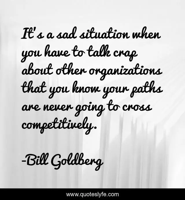 This page presents the quote "It's a sad situation when you have to talk crap about other organizations that you know your paths are never going to cross competitively.". Author of this quote is Bill Goldberg. .