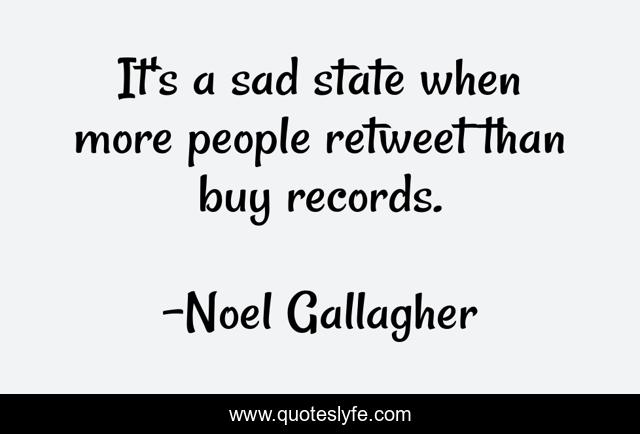 This page presents the quote "It's a sad state when more people retweet than buy records.". Author of this quote is Noel Gallagher. This quote is about records, buy, people,.