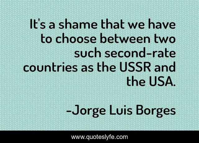 This page presents the quote "It's a shame that we have to choose between two such second-rate countries as the USSR and the USA.". Author of this quote is Jorge Luis Borges. This quote is about ussr, united-states, humour,.