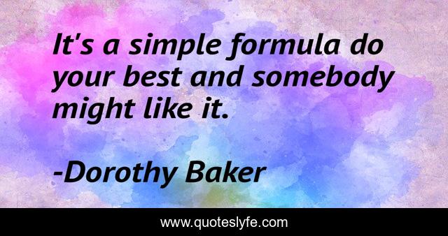 This page presents the quote "It's a simple formula do your best and somebody might like it.". Author of this quote is Dorothy Baker. .