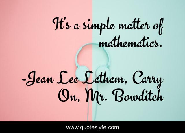 "Jean Lee Latham, Carry On, Mr. Bowditch Quotes." Quoteslyfe.com, 2025. Sat. 06 Dec. 2025. <https://www.quoteslyfe.com/quote/It-s-a-simple-matter-of-mathematics-247195>.