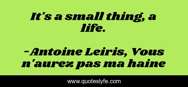 "Antoine Leiris, Vous n'aurez pas ma haine Quotes." Quoteslyfe.com, 2025. Sat. 06 Dec. 2025. <https://www.quoteslyfe.com/quote/It-s-a-small-thing-a-life-123383>.