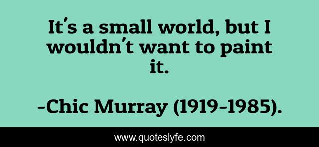 "Chic Murray (1919-1985). Quotes." Quoteslyfe.com, 2025. Sun. 07 Dec. 2025. <https://www.quoteslyfe.com/quote/It-s-a-small-world-but-I-56200>.