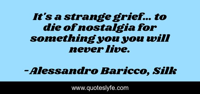 This page presents the quote "It's a strange grief… to die of nostalgia for something you you will never live.". Author of this quote is Alessandro Baricco, Silk. .