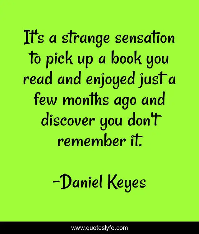 This page presents the quote "It's a strange sensation to pick up a book you read and enjoyed just a few months ago and discover you don't remember it.". Author of this quote is Daniel Keyes. This quote is about read, remember, strange, book, enjoyed,.