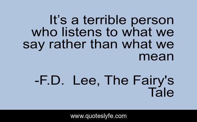 This page presents the quote "It’s a terrible person who listens to what we say rather than what we mean". Author of this quote is F.D. Lee, The Fairy's Tale. This quote is about humorous, humor, humour,.