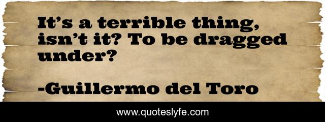 This page presents the quote "It’s a terrible thing, isn’t it? To be dragged under?". Author of this quote is Guillermo del Toro. This quote is about horror, middle-grade-fantasy, trolls,.