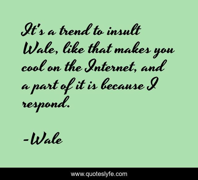 This page presents the quote "It's a trend to insult Wale, like that makes you cool on the Internet, and a part of it is because I respond.". Author of this quote is Wale. This quote is about internet, insult,.