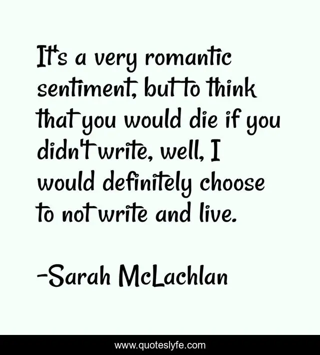 This page presents the quote "It's a very romantic sentiment, but to think that you would die if you didn't write, well, I would definitely choose to not write and live.". Author of this quote is Sarah McLachlan. This quote is about live, think,.