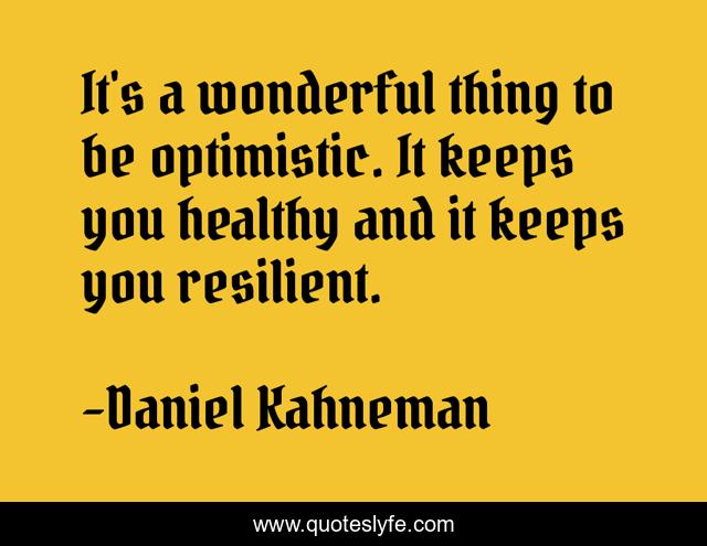 This page presents the quote "It's a wonderful thing to be optimistic. It keeps you healthy and it keeps you resilient.". Author of this quote is Daniel Kahneman. This quote is about healthy, wonderful,.