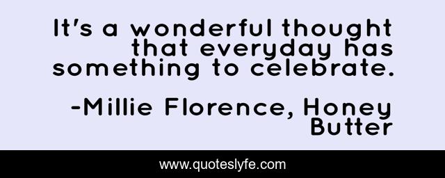 This page presents the quote "It's a wonderful thought that everyday has something to celebrate.". Author of this quote is Millie Florence, Honey Butter. This quote is about celebration, everyday, thoughts, wonderful-life,.