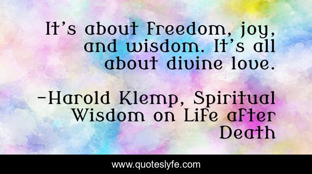 This page presents the quote "It’s about freedom, joy, and wisdom. It’s all about divine love.". Author of this quote is Harold Klemp, Spiritual Wisdom on Life after Death. This quote is about divine-love, freedom, wisdom, joy,.