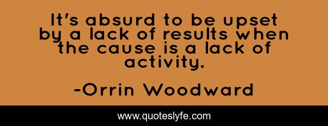 This page presents the quote "It's absurd to be upset by a lack of results when the cause is a lack of activity.". Author of this quote is Orrin Woodward. This quote is about activity, results, actions, work-ethic,.