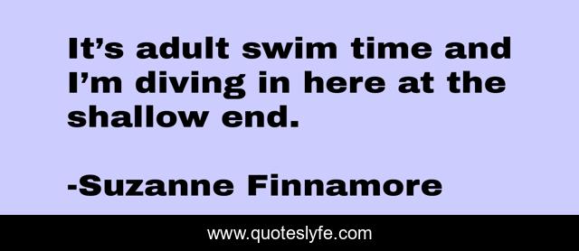 This page presents the quote "It’s adult swim time and I’m diving in here at the shallow end.". Author of this quote is Suzanne Finnamore. This quote is about humor, adulthood, responsibility,.