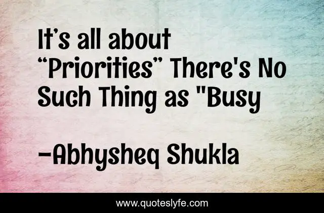 "Abhysheq Shukla Quotes." Quoteslyfe.com, 2025. Sat. 06 Dec. 2025. <https://www.quoteslyfe.com/quote/It-s-all-about-Priorities-There-s-81664>.