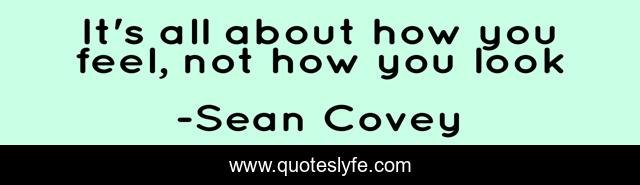 This page presents the quote "It's all about how you feel, not how you look". Author of this quote is Sean Covey. This quote is about confidence, positive, motivational, optimistic, inspirational, self-help, enthusiasm, self-improvement,.