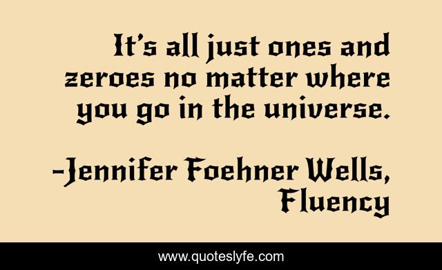 This page presents the quote "It’s all just ones and zeroes no matter where you go in the universe.". Author of this quote is Jennifer Foehner Wells, Fluency. .