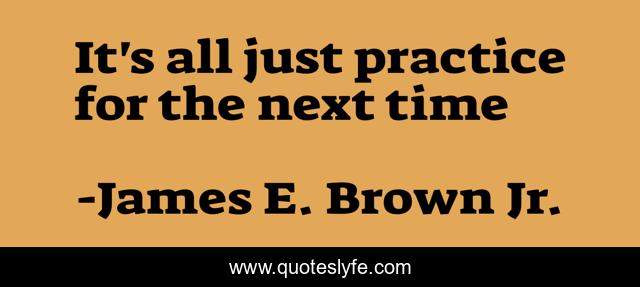 This page presents the quote "It's all just practice for the next time". Author of this quote is James E. Brown Jr.. This quote is about continuous-improvement, development, career-development, commitment, practice-makes-perfect,.