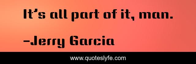 This page presents the quote "It’s all part of it, man.". Author of this quote is Jerry Garcia. This quote is about enthusiasm, inspirational,.