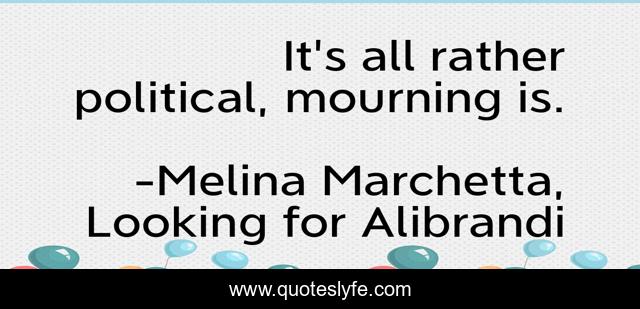This page presents the quote "It's all rather political, mourning is.". Author of this quote is Melina Marchetta, Looking for Alibrandi. This quote is about politics, mourning,.