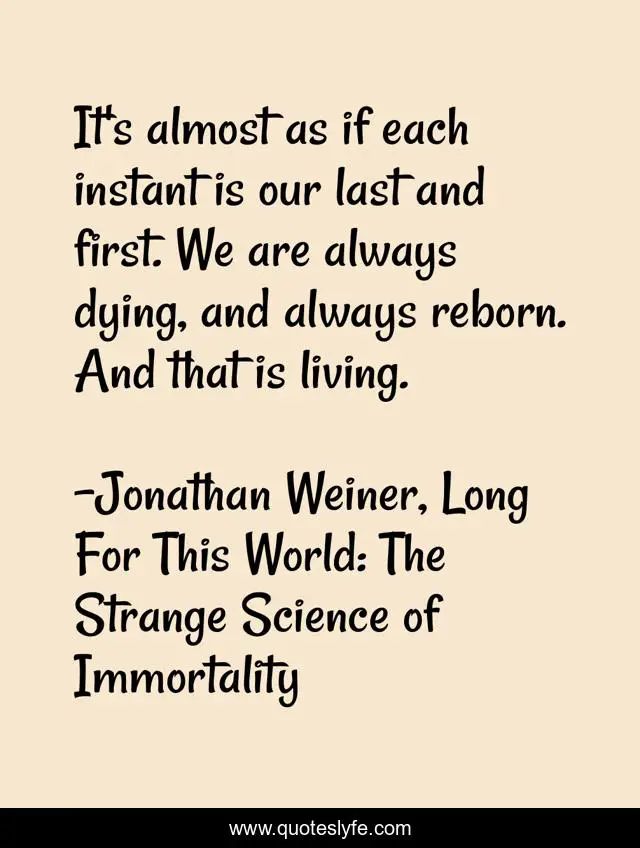 "Jonathan Weiner, Long For This World: The Strange Science of Immortality Quotes." Quoteslyfe.com, 2025. Sat. 06 Dec. 2025. <https://www.quoteslyfe.com/quote/It-s-almost-as-if-each-instant-42018>.