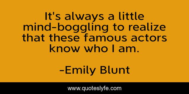 This page presents the quote "It's always a little mind-boggling to realize that these famous actors know who I am.". Author of this quote is Emily Blunt. .