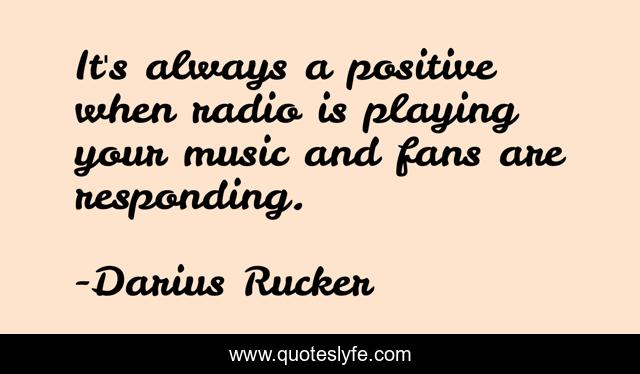 This page presents the quote "It's always a positive when radio is playing your music and fans are responding.". Author of this quote is Darius Rucker. This quote is about music, fans, radio,.