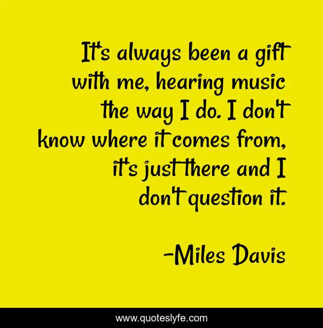This page presents the quote "It's always been a gift with me, hearing music the way I do. I don't know where it comes from, it's just there and I don't question it.". Author of this quote is Miles Davis. This quote is about me, gift,.