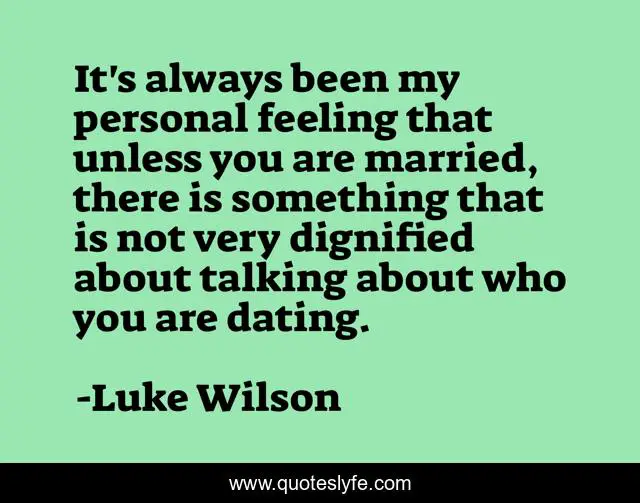 This page presents the quote "It's always been my personal feeling that unless you are married, there is something that is not very dignified about talking about who you are dating.". Author of this quote is Luke Wilson. This quote is about personal, feeling,.