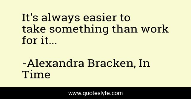 "Alexandra Bracken, In Time Quotes." Quoteslyfe.com, 2025. Fri. 05 Dec. 2025. <https://www.quoteslyfe.com/quote/It-s-always-easier-to-take-something-229300>.