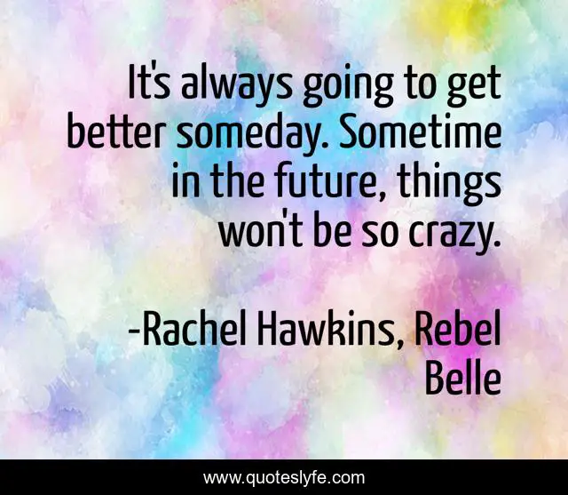 This page presents the quote "It's always going to get better someday. Sometime in the future, things won't be so crazy.". Author of this quote is Rachel Hawkins, Rebel Belle. This quote is about rebel-belle, crazy, future, mgg, rachel-hawkins,.